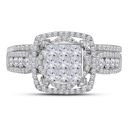 1.05Ctw Diamond Square Bridal Engagement Wedding Ring Band Set 14k White Gold