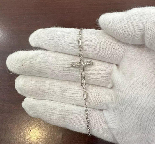 0.20 cttw Diamond Cross Adjustable Bolo Bracelet 925 Sterling Silver