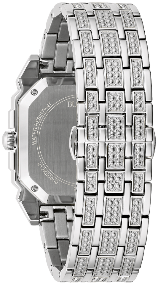 Bulova Octava Crystal Silver tone Mens Octagon Watch 96A285
