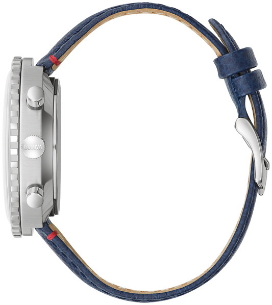 Bulova Chronograph C Men Blue Leather Strap Watch 96A283