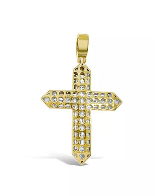 1.75 Cttw Baguette Diamond Cross Mens Charm Pendant 10k Yellow Gold