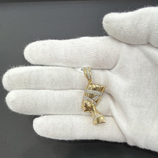 0.25ctw Diamond Egyptian Queen Nefertiti Mens Charm Pendant 10k Yellow Gold