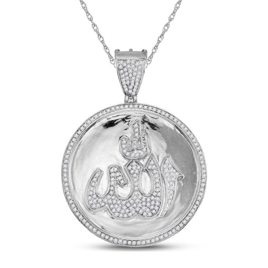 0.75ctw Diamond Allah Round Pendant Charm 10k White Gold Islamic Jewelry