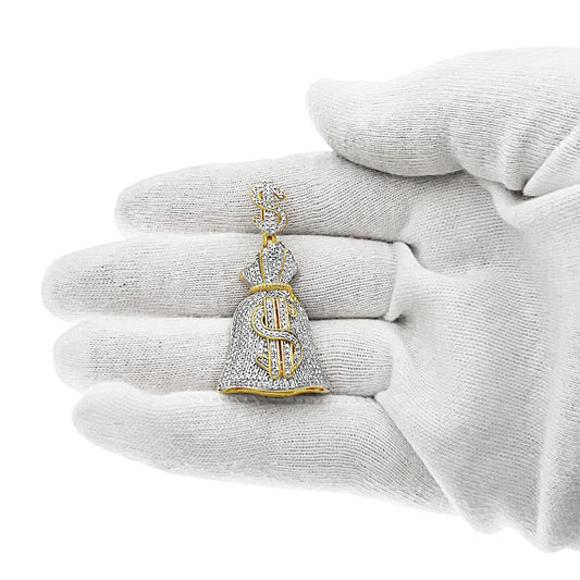 0.75 Cttw Diamond Money Bag Dollar Sign Mens Charm Pendant 10k Yellow Gold