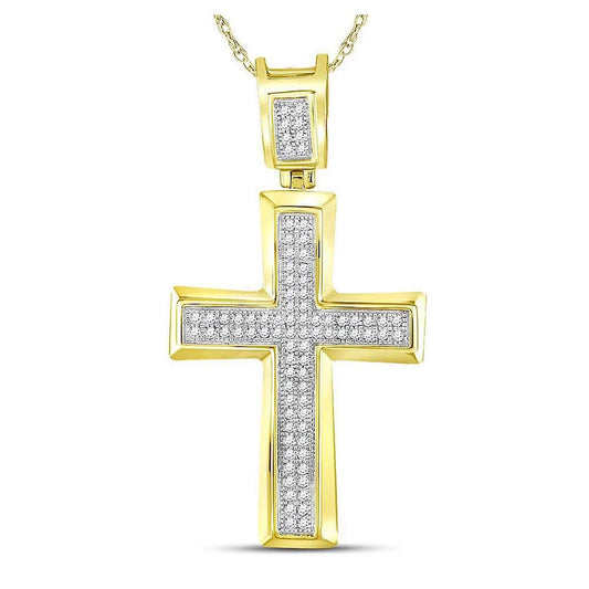 1 Cttw Round Diamond Jesus Crucifix Cross Pendant Mens Charm 10k Yellow Gold