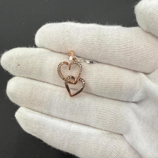Chocolate Diamond Double Heart Pendant Charm 10k Rose Gold