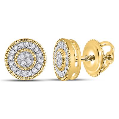0.15ctw Diamond Round Cluster Stud Mens Earrings 10k Yellow Gold Screw Back