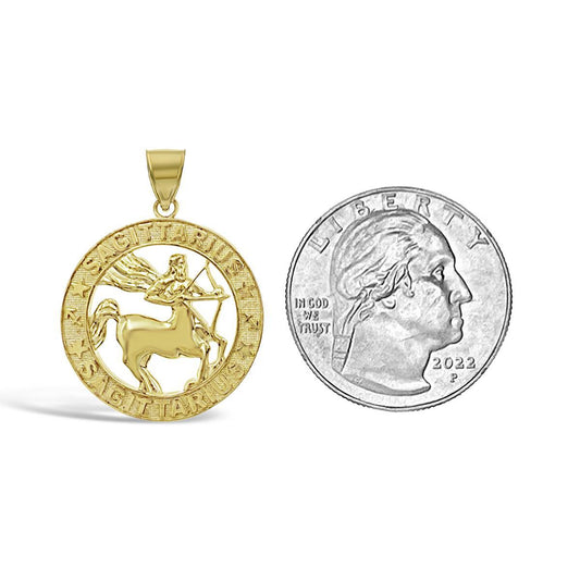 10k Yellow Gold Sagittarius Pendant Zodiac Star Sign Charm 1.1 inch
