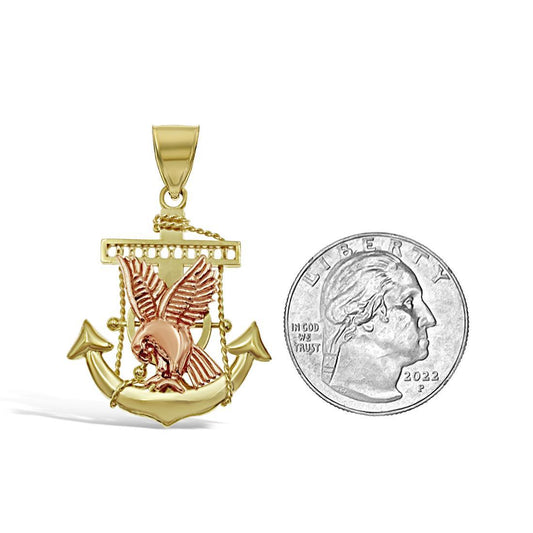 Anchor Eagle Pendant Mens Charm 10k Two Tone Gold 1.5 inch