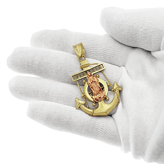 Lady Guadalupe Virgin Mary Anchor Pendant Charm 10k Yellow Rose Gold 2 inch