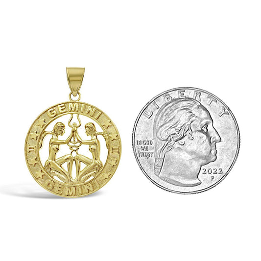 14k Yellow Gold Gemini Pendant Zodiac Star Sign Charm 1.5 inch