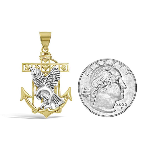 Anchor Eagle Pendant 10k Two Tone Gold Charm 1.4"