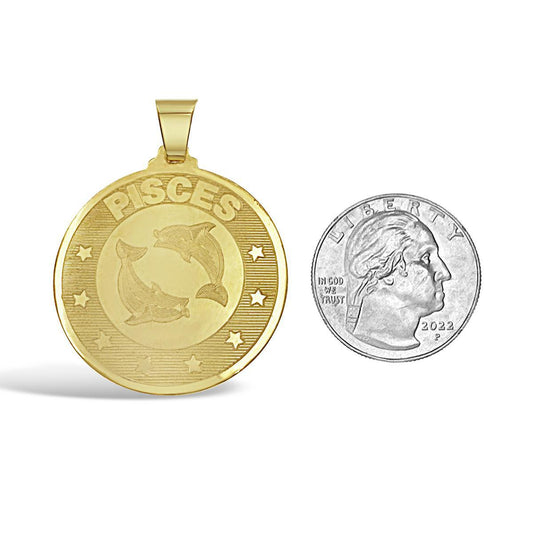 14k Yellow Gold Pisces Pendant Zodiac Star Sign Charm 1.7 inch