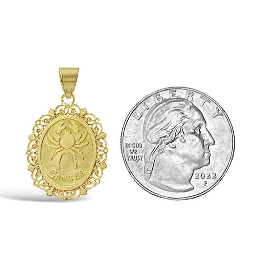 10k Yellow Gold Cancer Pendant Zodiac Star Sign Charm 1.1 inch