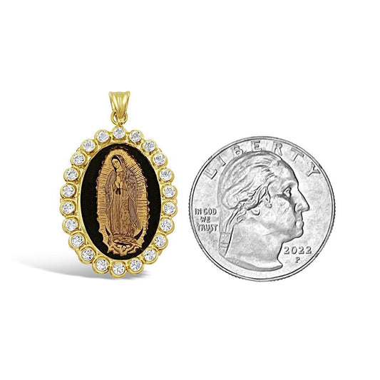 14k Gold Virgin Mary Pendant Lady Guadalupe Charm Oval 1.3"