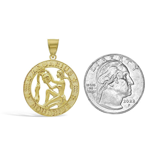 10k Yellow Gold Aquarius Pendant Zodiac Star Sign Charm 1.1 inch