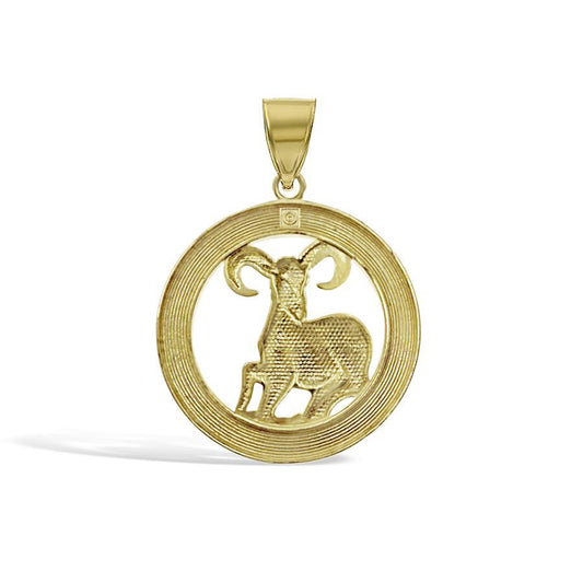 10k Yellow Gold Aries Pendant Zodiac Star Sign Charm 1.1 inch