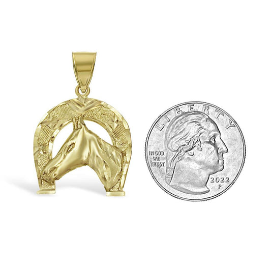Lucky Horseshoe Horse Head Charm Pendant 10k Yellow Gold