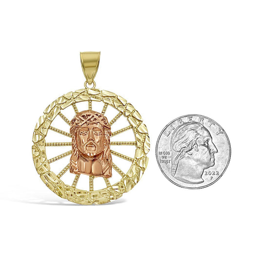 Jesus Head Face Pendant Mens Charm 10k Yellow Rose Gold 2 inch