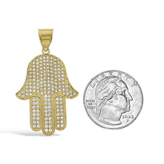 Hamsa Fatima Hand Pendant CZ Charm 10k Yellow Gold 1 inch