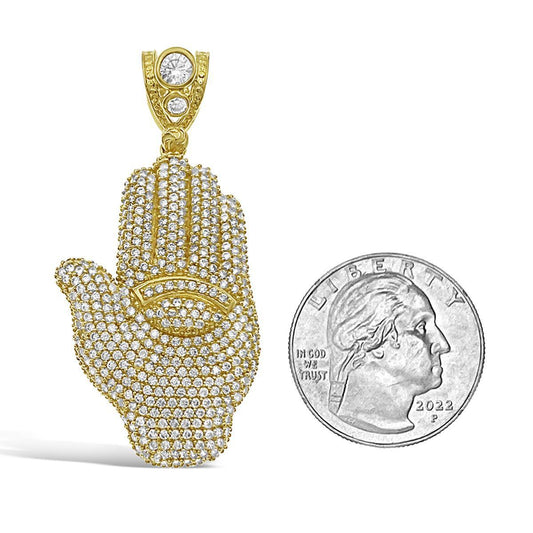 Hamsa Fatima Hand Pendant Charm 10k Yellow Gold CZ 1.2 inch