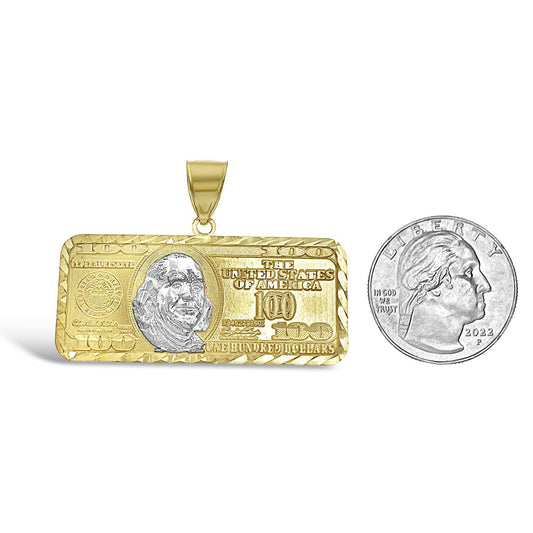 Money Bill $100 Dollar Pendant 10k Yellow Gold Mens Charm