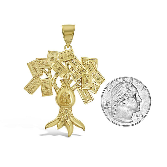 10k Yellow Gold Money Three 100 Dollar Pendant Mens Charm 2.1 inch