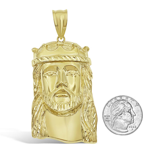 3.3" Large Jesus Head Pendant 10k Yellow Gold Mens Charm