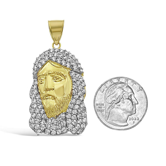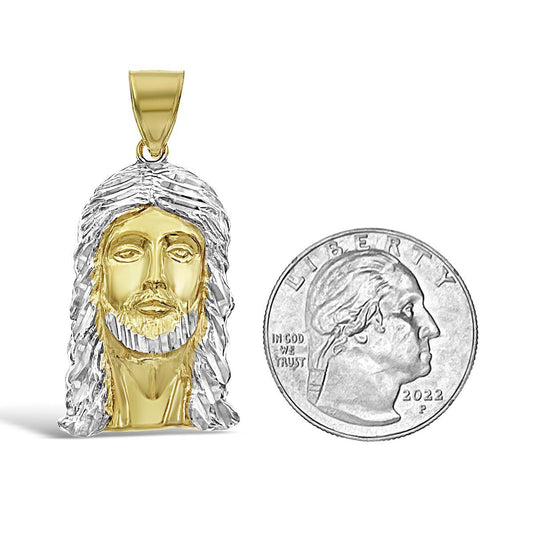 Jesus Head Face Pendant Mens Charm 10k Yellow White Gold 1.6 inch