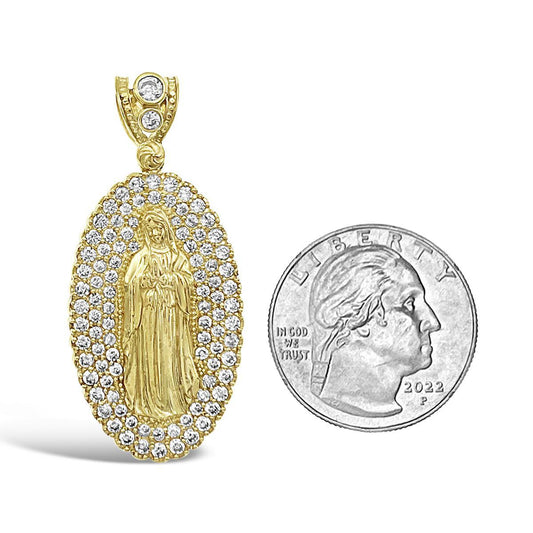 Virgin Mary Pendant 10k Gold Lady Guadalupe CZ Charm 1.7"