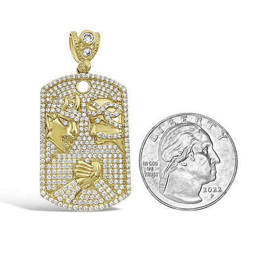 Tag Rectangle Pendant Mens Charm 10k Yellow Gold CZ 1.9 inch