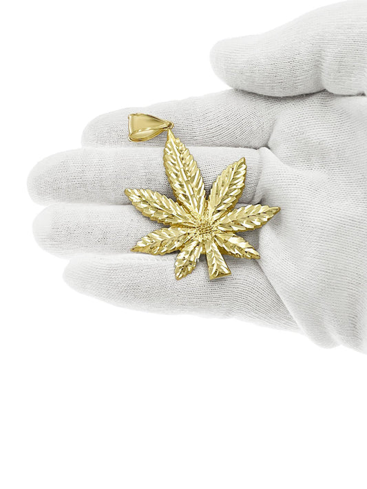 Marijuana Leaf Pendant 10k Yellow Gold Charm 2.5"