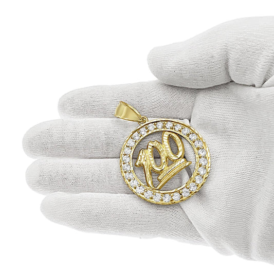 100 Emoji Pendant 10k Yellow Gold Round Charm CZ 1.8"