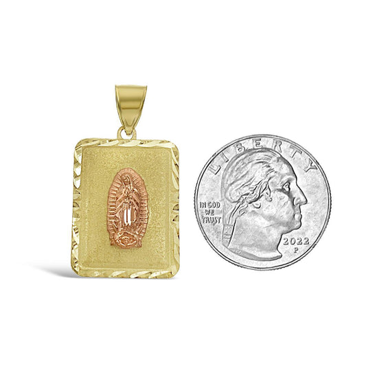 Virgin Mary Pendant Charm 10k Yellow Rose Gold Lady Guadalupe 1.3 inch