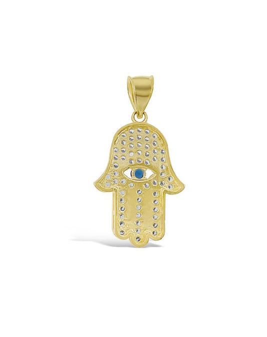 Hamsa Fatima Hand Pendant 10k Yellow Gold CZ Charm 1 inch