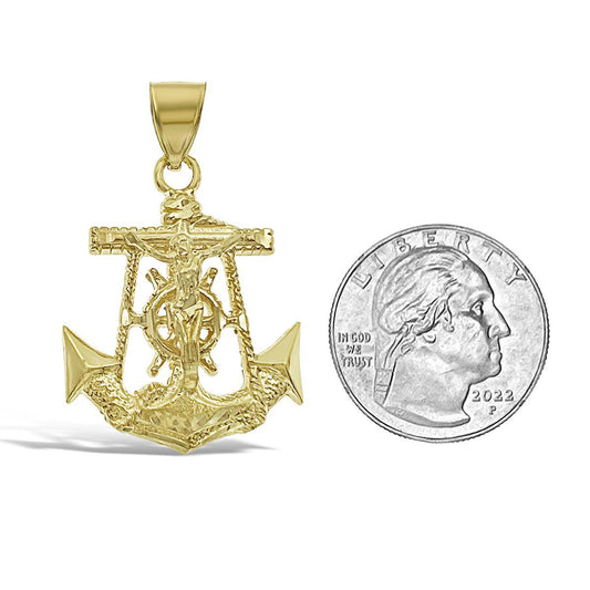 Anchor Jesus Crucifix Pendant 10k Yellow Gold