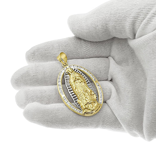 Virgin Mary Pendant 10k Gold Lady Guadalupe Charm 2"
