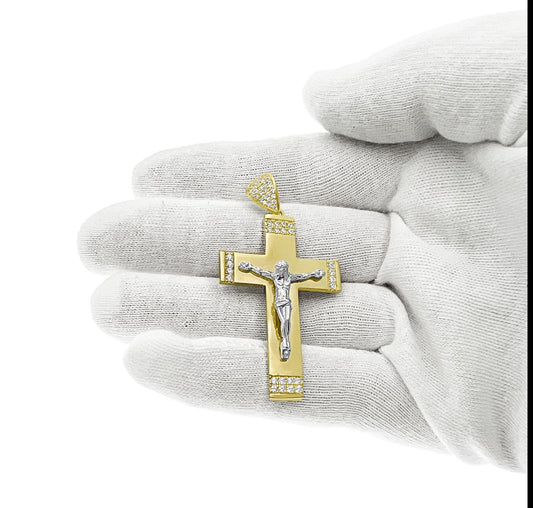 Jesus Cross Crucifix Pendant 10k Gold Two Tone