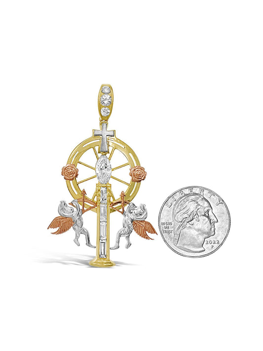 Cross Angels Pendant 10k Tri Color Gold Charm 2.2 inch