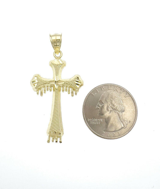 10k Gold Cross Drip Pendant Charm Diamond Cut 1.9"
