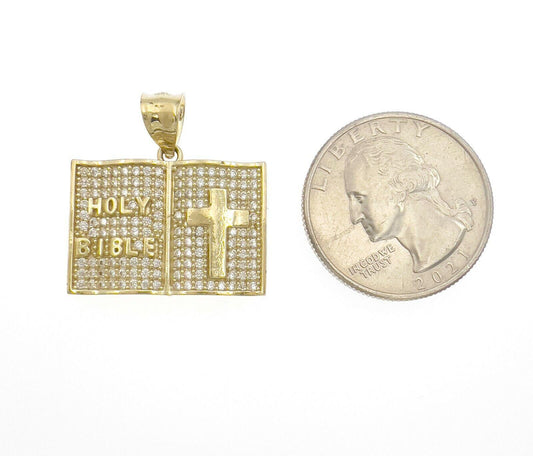 Holy Bible Praying Book Pendant CZ Charm 10k Yellow Gold 1 inch