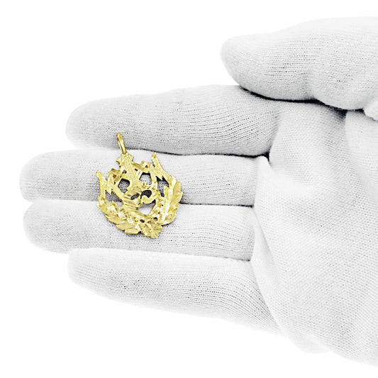 Hamsa Pendant 10k Yellow Gold Hand Charm 1.6 inch