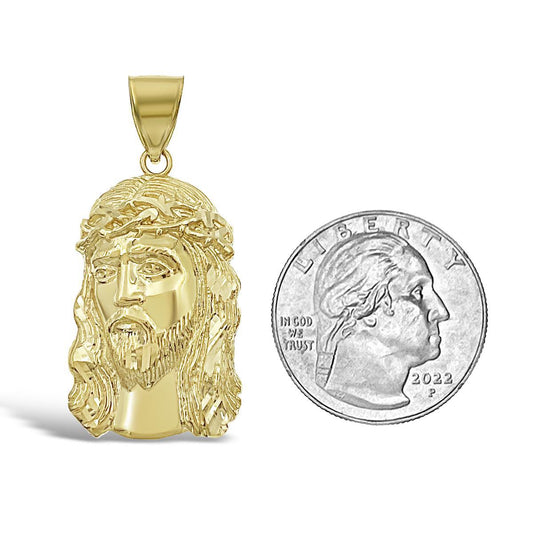 Jesus Face Pendant 10K Yellow Rose Gold Religious Charm 1 inch