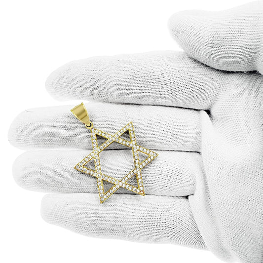Star of David Pendant Charm 10k Yellow Gold 1.6 inch