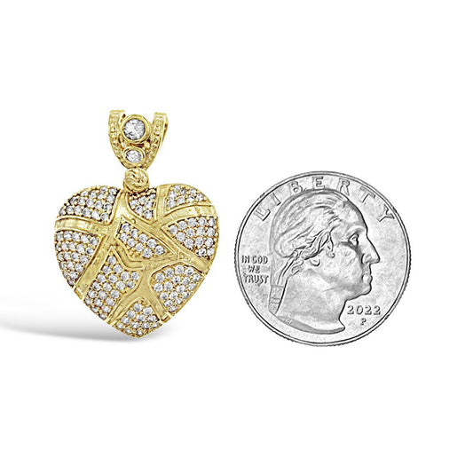 14k Yellow Gold Heart Pendant Love CZ Charm 1.2 inch