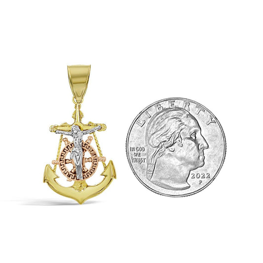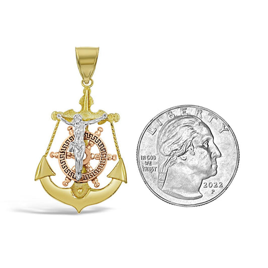 Anchor Jesus Crucifix Cross Mens Pendant 10k Tri Color Gold Charm 1.5 inch