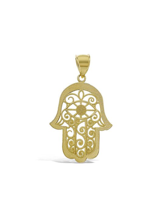 Hamsa Pendant 10k Yellow Gold Hand Charm 1.6 inch