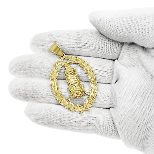 10K Yellow Gold Lady Of Guadalupe Oval Leaf Border Pendant Virgin Mary