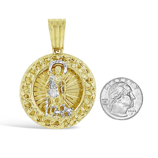 Saint Lazarus Pendant Medallion 10k Two Tone Gold Charm 2.4 inch
