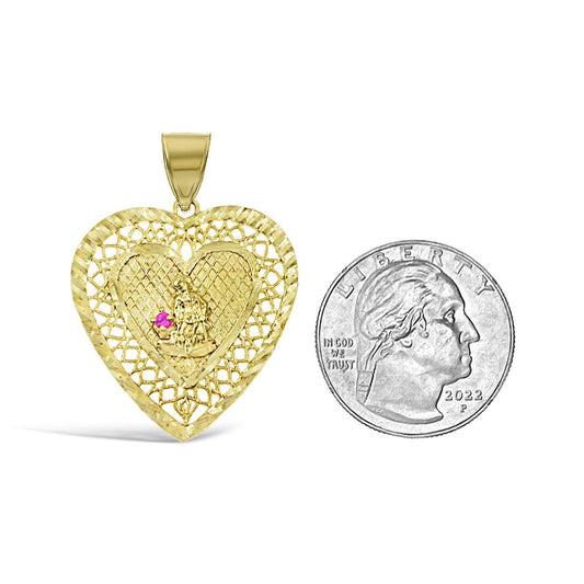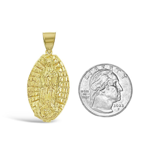 Virgin Mary Pendant Lady Guadalupe Charm 10k Yellow Gold 1.5 inch